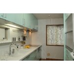 アクアブルーで清々しい空間のキッチンを演出しました。
