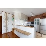 お子様が小さい為、リビングの様子が見られるようなキッチンと、既存キッチンが個室で壁に囲まれており暗い印象だったため明るい印象のあるキッチンをご要望