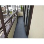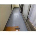 ベランダ防水工事と天井からの物干しを楽にする為に、ベランダの床に合板を敷き、洗濯が楽になるようにしその上から防水塗装をしています。