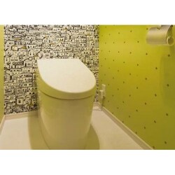 エコといえばネオレストAHということで、省エネデータとともにご提案。 5.5L(現行機種は4.8L)の水で便器を洗浄できること、さらには清掃性にも優れているので、洗剤等の環境負担も軽減されます。データとともにご提案することで説得力が増し、すぐに採用となりました。 リフォームのポイントとして、タンクがなくなることで、圧迫感がなくなることもポイントの1つです。 スタイリッシュなデザインの便器にあわせて、内装にもこだわり、海外メーカーの壁紙を使用。 狭い空間ながら奥行き感を演出するため側面と奥の壁紙にはコントラストの強い違う柄を使用。 空間デザインにこだわるお客様にもご満足いただけるハイセンスな空間になりました。