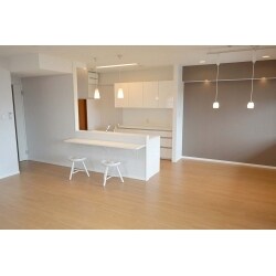 LDKに続く和室を洋室に変えて、ゆったり過ごせる広いリビングと、たっぷり使える収納を作りました。 水廻りは明るく清潔感のある白で統一しました。 対面キッチンには椅子に座ってちょうどよい高さのカウンターを設置し、 朝食など落ち着いてとることができます。 目的や気分に合わせて、カウンターとダイニングテーブルを 便利に使いわけることができるようになりました。