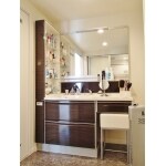 513.フローリングと洗面台の色味がほどよく高級感漂う洗面室