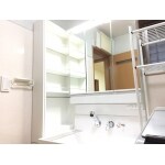 壁いっぱいの収納で利便性UPの洗面化粧台!
