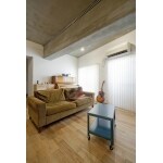 足ざわりのいい無垢材とモルタル仕上げでクールに配管も一新。見えない部分から再生。 必要以上に広かったLDKの一角を寝室に変えて、寝室だったところを子供部屋に変更。色数はできるだけ少なくして統一感を重視しました。モルタル仕上げの無機質感と無垢フローリングの自然感がマッチングして、クールな中にも自然素材の優しさが感じられます。
