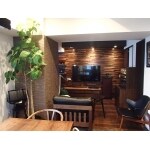 2部屋を仕切る壁を取り払い広い1部屋にすることをご提案しました。抜いた壁の床の部分にはタイルを埋め込み、また柱にはアクセントとなるエコカラットを貼りました。落ち着いた雰囲気が出せるよう工夫しました。