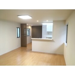 LDKと洗面所、納戸の間仕切りを取り、キッチンを対面式にすることをご提案し、明るく開放感のあるLDKになりました。 パソコンカウンターの間仕切りには格子を採用し、圧迫感なく適度に光を通してくれます。 床暖で寒い季節でも快適に過ごせるようになりました。