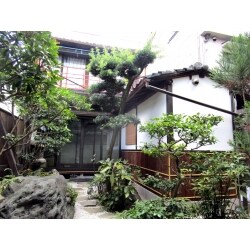 外部の水廻り設備一式の交換と 老朽化が進んでいた外壁には 裏庭の雰囲気に合うよう漆喰、杉皮を施しました。