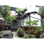 老朽化の進んでいた外壁は 庭園風の裏庭に合う漆喰仕上げに。 杉板を用いたことで落ち着いた和の雰囲気になりました。