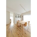 ご主人の転勤に伴って購入された琵琶湖沿いの景色の良いマンション。 無垢の素材にこだわって床・キッチン・リビングドアを選び、小上がりの和室も子供部屋もあえて仕切らず開放的な空間に仕上がっています。