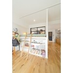 リビングダイニングから続く洋室は子供部屋に。 ご希望のロフトは下部を本棚、リビング側は来客用の布団を仕舞う収納にしました。 こもることのない空間ということで、あえて扉は付けずオープンに。