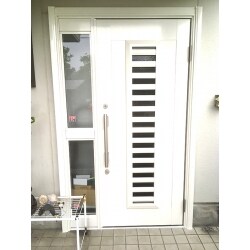 汚れが気になるのと防犯面がご心配で、玄関ドアの取り替えのご依頼を受け、通風ができる玄関ドアをご提案しました。 玄関前の階段の手すりの取り付けも含め、半日でリフォームしました。