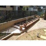 天然の枕木で作られていた花壇が古くなっていたので、この先長く楽しめるレンガと乱形石の花壇に作り替えました。