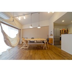 実家を引き継ぎ、自分たち好みにリフォームへ。 ロフトあり、ハンモックあり、タイル壁あり…それでもスッキリとした仕上がりになりました。