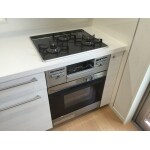 コンベックのみの交換で提案する予定でしたが既存のコンロがコンベックと接続できないタイプの為、コンロも交換しなくてはいけない状況になりました。また収納部分がコンベックよりも広いため、コンベックを設置するにあたり隙間部分を埋める提案として150mm幅のフロアキャビネットを設置することをお勧めし面材を既存のシステムキッチンと合わせた商品で設置致しました。よって全体的に統一感が出て仕上がりも綺麗になりました。