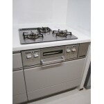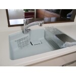 トクラス ベリー にお取替え。 扉カラーは絹鼠(きぬねず)ワークトップは人造大理石ニューグラーナホワイト、 シンクカラーはソルベブルーをお選びいただきました。 L字型のカウンターはひろびろと余裕の広さです。