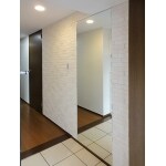 今回はタイルをふんだんに使った空間を表現しました。玄関収納は天井までの大きなものでたっぷりと収納できるもの。鏡を付けることで空間を広く感じさせています。 エコカラット LIXIL [グラナス ヴィスト ホワイト] を施工。 照明があたる角度により 違った陰影が生み出され、 美しいテクスチャが楽しめます。 鏡の効果で空間がとても広く感じられるようになりました。