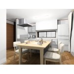 LIXIL シエラ にお取替え。 扉カラーは シルキーシダー ワークトップは人造大理石 ベーシックホワイト をお選びいただきました。 コンロ全面はガラスパネルで、見通しがよく かつ捕煙効果も高くなっています。 背面収納は トクラスのベリー。 他メーカーのシリーズですが、 家事動線にゆとりを持たせるために 奥行300mmがある同シリーズ からの選定を ご提案させていただきました。 平面図面だけでなく3Dパースを作成して、 リフォーム後のイメージをご確認いただきました。