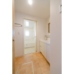 洗面脱衣室を広くしてほしいとのことだったので、位置はあまり替えずにスペースを広げました。 以前使っていたコンパクトな物から広々とした洗面化粧台に入れ替えて、床はテラコッタ調に。 新たにスペースを確保したことによって、動線もスムーズになりました。