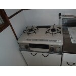 キッチンを改修しました。主な施工内容は、天井壁塗装替え、流し台・吊戸棚塗装替、流し台底板張り、湯沸かし器・ガスコンロ設置、ハウスクリーニングです。