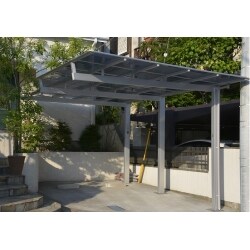 ゆとりのある駐車スペースを確保するため、片側柱で施工できる三協アルミのマイリッシュをおすすめいたしました。 屋根は駐車場全体をカバーできるワイドタイプ、猛暑の陽射し軽減も考慮して素材には熱線遮断ポリカをおすすめいたしました。