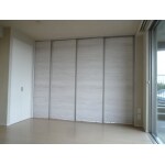 天井・壁面ともに珪藻土左官仕上げにてご提案 リビング~洋室 間仕切壁は撤去して開閉壁を設置 既存収納扉を利用しながら内部収納容量を拡大加工
