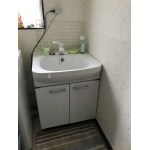 トイレの床とクロスも貼り替え、トイレを背面に寄せて設置したことでトイレが広く感じられるようになりました。
