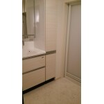 - 収納力強化の洗面台キャビ。