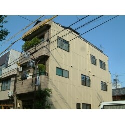 お隣の建物がまじかに隣接していることもあり、御近所への配慮も必要でした。何度も行えない事なので高価ではありますが耐候性、耐汚染性に優れた塗装をチョイスされました。 モルタルで防水の保護がなされていた部分がヒビなどでみすぼらしくなっていた為補修し軽歩行塗料を塗布しました。