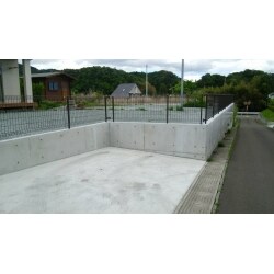 既存擁壁の上に体裁を考え、同じようにコンクリートで土留めを施工し、その上にフェンスを設置。法面になっている分も埋め戻しをし、広く土地を付けるように設計しました。 その他に雑草が生えない様、敷地には防草シート、砕石を敷き詰めました。