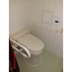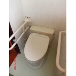 トイレに跳ね上げ式手すり・補高便座取付のため、ついでにトイレ機器交換と内装の変更
