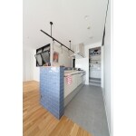 お家全体は白を基調とし、中心となるLDKに碧色のタイルを取り入れることによって爽やかな空間に。 床はご要望の無垢材を敷き、爽やかな中にも優しさを感じられる空間を作り上げました。