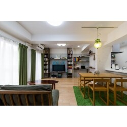 色鮮やかなクロス、柄のはいったクロス、インテリアカラー さまざまな色がアクセントとなり空間のポイントになっています。 間取りは3室が1つになるような設計を。扉を開ければ広々LDKに大変身です。