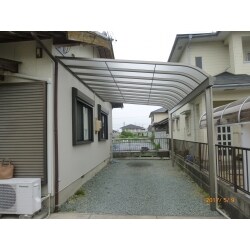 全体的にカーポートを前に出して設置し色もアーバングレーにしたことで明るい雰囲気になりました。 建物に固定することと高さを上げたことで圧迫感もなくいい雰囲気になりました。