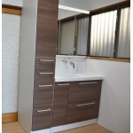 収納充実のスライドキャビネット+三面鏡プランです。
