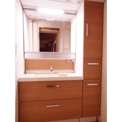 今回、セカンドハウスとしてご利用のお宅の水廻り設備をきれいにしたいと御依頼を頂きました。 ムダなスペースがお嫌いなK様。洗面化粧台は間口いっぱいにかつ収納量をアップさせる為、化粧台とサイド収納という形でご提案致しました。 洗面化粧台の商品はLIXILのミズリア。洗面室を憧れのパウダールームに変えるワンランク上のドレッサーです。 本体間口サイズは750mm・900mm・1,000mm・1,200mmの4タイプです。
