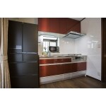キッチン設備はご夫婦とショールームへ行き、一緒に見ながら好みをお伺いし相談させていただきました。 ボルドーと迷われましたが、暗くなり過ぎないようにフローリングの色とより合う方をお勧めしました。 新調された冷蔵庫ともよく合って素敵な空間に仕上がり、みんなで集まるのが楽しみだとご満足いただけました。