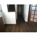 高性能断熱材を施工する為に既存床板を撤去して あたたかみのある赤松の無垢床材をご提案させて頂きました。 色は既存に合うよう、自然塗料で着色しました。