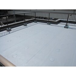 全体をシート防水で施工。立ち上がり箇所については、防水塗装を施しました。