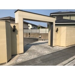 (旧京都建物株式会社(京都建物工務店リフォーム)での事例です。)ガレージのシャッターゲート部分の外構リフォームをさせていただきました。元々砂利敷きでしたが、コンクリートタイルを敷き詰め、スタイリッシュな印象に生まれ変わりました。