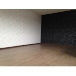 棚は残してバックをホワイト系、横にアクセントクロスを貼りました。テレビの設置を予定してアンテナとコンセントも増設してます。