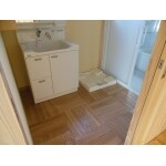 洗面室は1坪サイズ 床は水に強いが暖か味のあるタモ材をご提案しました。
