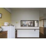 スッキリとしたI型のキッチンに変更、背面に大きな収納を取り付け。 電動昇降式の吊戸・食器乾燥機を設けるため、あえて壁を作りましたが、キッチン内のスペースが増えたうえに、収納量を増やすこともできます。