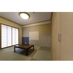 先ずはリフォームの初端となったトイレ、節水カ型のトイレに取り換えました。浴室は段差の少ないユニットバスに交換。 居間として使っている和室は、押入れをクローゼットに改装し内部の間仕切りに工夫し、長ものも吊るせる使い易い収納にリフォーム。 和室の壁はエコカラットを一面に、和室を意識した色調のものをデザイン貼りにして使い、ポイントにしました。エコカラットには調湿効果もあるので、気密性が高いマンションでは機能面でもお役に立ちます。