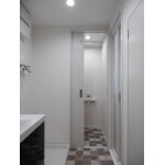 以前は60cmの洗面台が付いていました。ご家族での利用を考え、90cmの洗面台へのお取替えをお勧めしました。分電盤や洗濯機水栓など設備機器も建築当初からのものでしたので、この機会にお取替えをご提案。見栄えはもちろんですが、水栓は逆止弁付きで水漏れ対策になるなど性能も良くなっています。