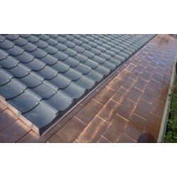 銅板と瓦の取り合い部分が雨水で穴が開くことがよくあります。そのため、瓦と銅板部の取り合いに『酸仕舞』というものをとりつけ、お客様の要望で新しい銅板に取り換えました。 酸仕舞を設置することで、銅板と瓦の取り合いに穴が開きにくくしています。 新しい銅板に葺き替える際には、こちらの商品を一緒に提案しています。 ※金額はその他の工事も含んでいます