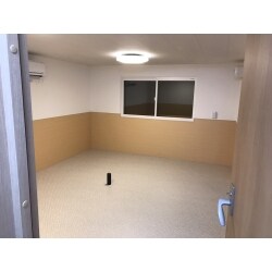 残置物搬出、床解体から始まりドアや窓を含む倉庫全体を防音にし、広々とした空間に。