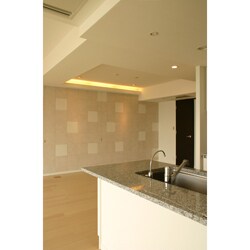 昼は富士山、夜は横浜のダイナミックな夜景が堪能できるすばらしい立地の物件でした。お客様のご要望でリビングに続いた和室を撤去し、リビングとの違和感が出ないように細かい配慮をし、もともとそこにあったかのような大空間が生み出されました。リビングの壁面上部には横長に間接照明をを埋め、夜ライトアップされた空間はなんともいえない雰囲気になりました。