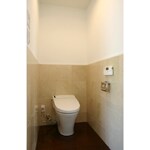 タンクレストイレと中折れ戸で省スペースなトイレ空間