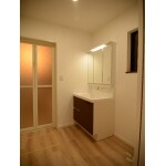 洗面小物収納が隠れる3面鏡の洗面化粧台へ