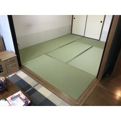 畳床が藁だったので、へこんだ部分を均一の厚みになるように新しい藁で縫い増ししてから 畳表を和紙畳表に新調しました。 なるべく早くお使い頂けるように、当日朝に畳を預からせていただきまして、翌日の夕方に設置する事ができました。